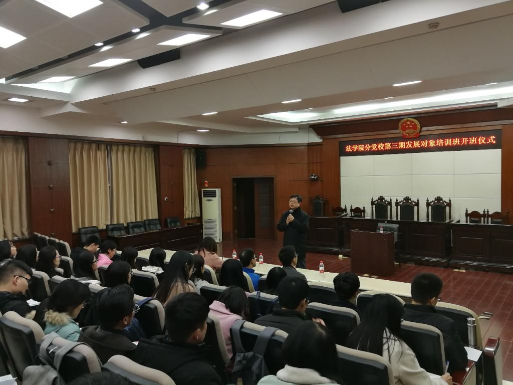 2017年11月22日晚上18:30,伟德国际1946亚洲版分党校第3期发展对象培训班开班仪式在伟德国际1946亚洲版模拟法庭如期举行。公司党委组织部刘鹏、公司党委副书记顾馨江、学工组组长郑伟、党建辅导员曹姗,出席了本次仪式。