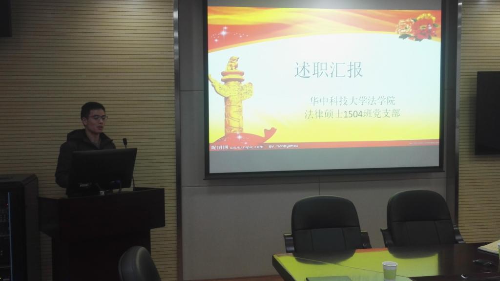 会议第一阶段是由教职工支部书记进行述职。教工第一支部书记郭亮同志讲到,教工一支部在完成组织生活会、交纳党费以及讲授微党课等规定动作时的效果较好。第二支部书记李薇薇同志与在座的支书们分享了自己在参加支部书记培训时针对如何讲好微党课、如何更好开展支书工作等问题的收获,还介绍了支部关于理论学习形式的创新做法,还有与洪山区检察院建立共建支部的特色活动等。教职工第三支部的党支书郑伟同志也表示支部能够完成规定动作,更多从反思的角度阐述支部工作的问题和不足,开展自我批评,并做出了2018年的计划与展望。