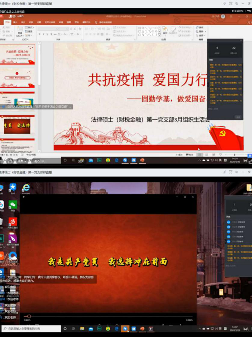 为深入贯彻落实习近平总书记关于各级党组织和广大党员、干部要在打赢疫情防控阻击战中发挥积极作用的重要指示精神,2020年3月26日下午14:30,伟德国际1946亚洲版法律硕士(财税金融)第一党支部召开了以“共抗疫情、爱国力行”为主题的线上专题党组织生活会。公司党委书记聂清斌、党支部全体党员参加了会议。本次专题组织生活会主要包括以下几个环节:微党课的学习、爱国事迹分享、支部读书会、自由讨论环节。