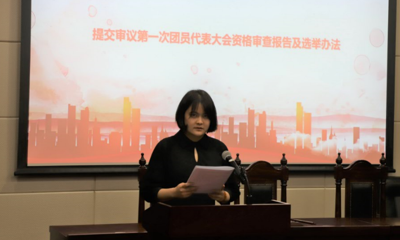 院团委组织部熊舟影同学向大会提交审议第一次团员代表大会资格审查报告及选举办法,并由唐柳向大会提交审议团委委员候选人名单及参加第四次校团代会代表候选人名单。