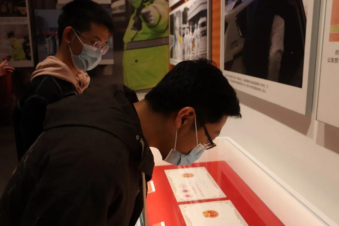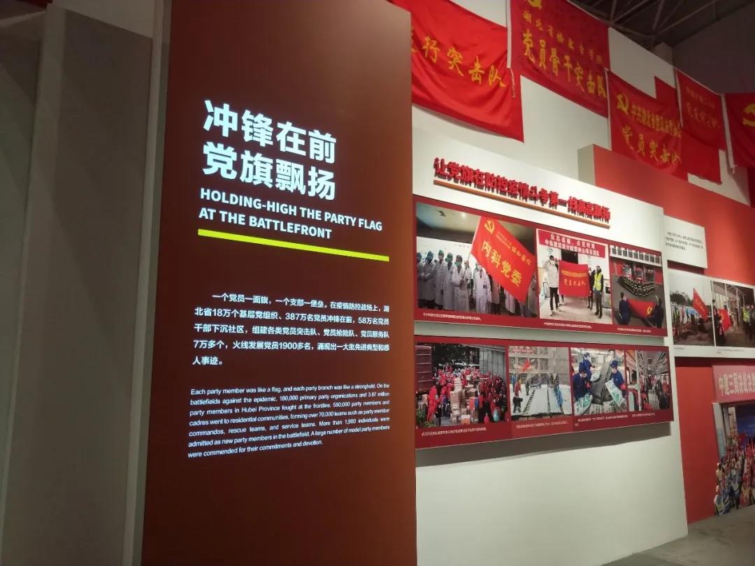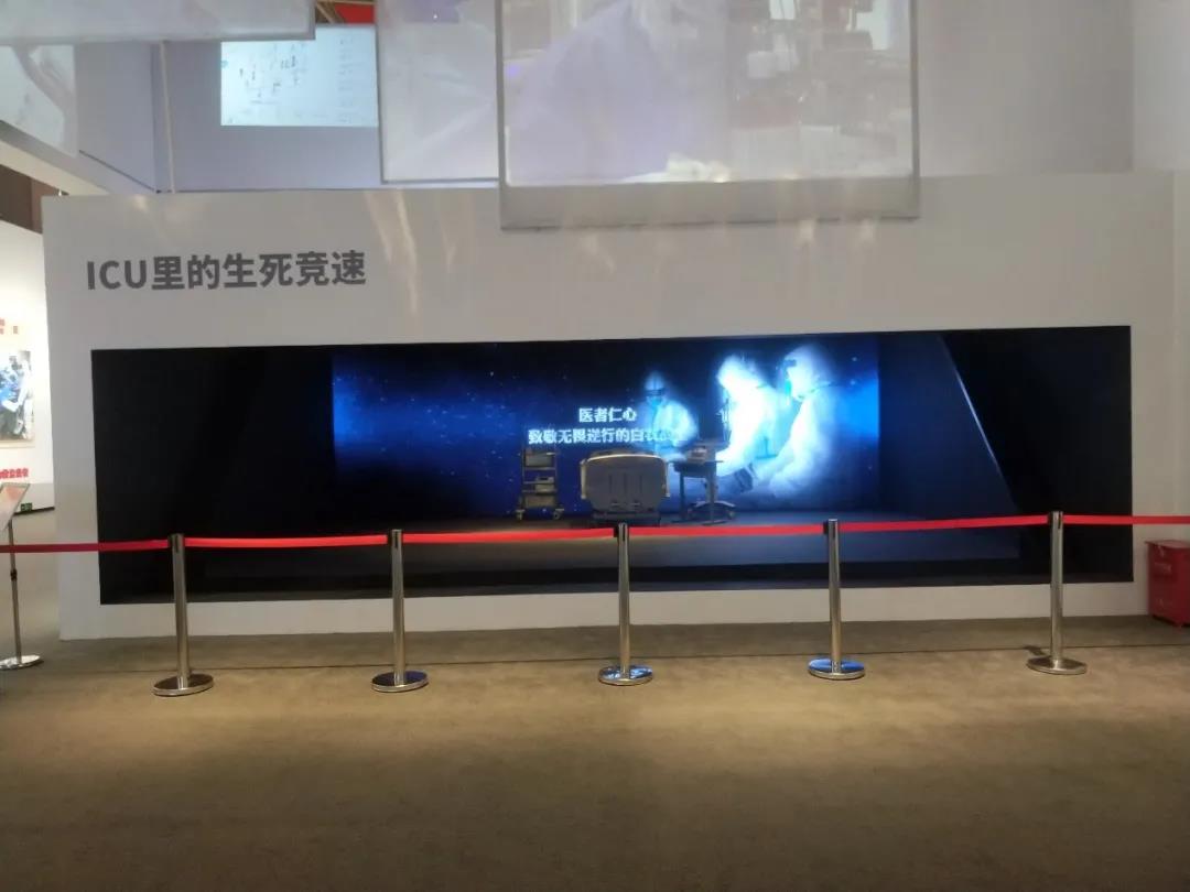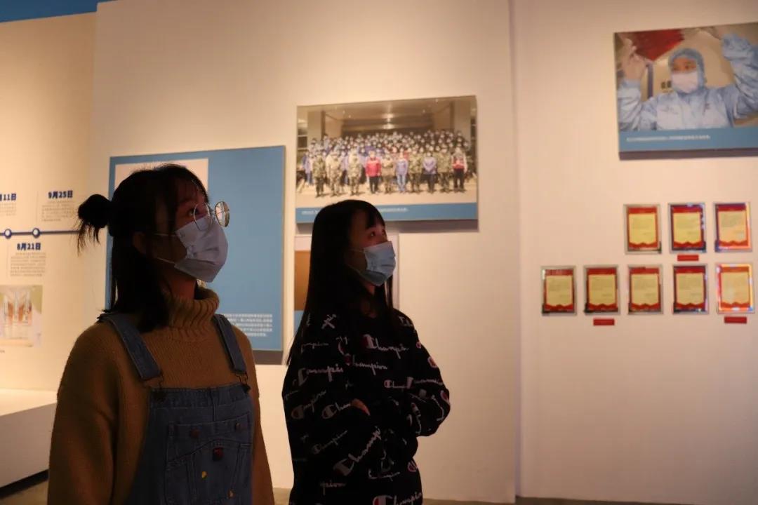 步入展厅,映入眼帘的一幕幕震撼人心的画面,让人仿佛身临其境地进入了这“没有硝烟的战场”。在这1445米的展览长廊里,同学们见证了在全息投影中 ICU病房的医护人员与病毒“近身搏斗”,开展生死救援的尖峰时刻;惊叹于 “火神山”、“雷神山”医院倾力抢建过程中争分夺秒的中国速度;聆听了实地还原的方舱医院里,墙上每一张书信和图画记叙的感人至深的故事;感知了居家抗疫的展示墙闪现的高歌与笑脸中,群众们展露的乐观与坚强;目睹了逆行出征的实景里,解放军战士一身迷彩,援鄂医疗队白衣为甲,展现出的“八方支援,共克时艰“的英雄气度;瞻仰了党旗飘扬之下,广大党员干部挺身而出、英勇奋斗,以实际行动践行初心使命的伟岸身影。