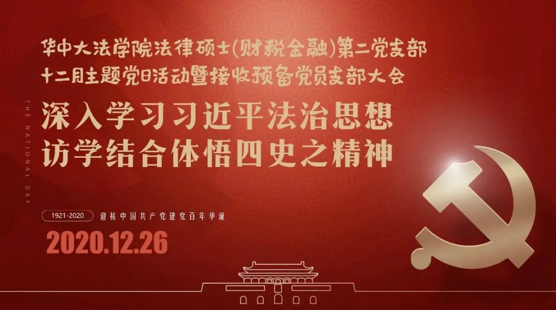 为持续开展“四史”学习教育,深入学习习近平法治思想,12月26日晚,伟德国际1946亚洲版法律硕士(财税金融)第二党支部在105会议室举行了主题为“深入学习习近平法治思想,访学结合体悟四史精神”的党日活动。活动由支部书记陈子建主持,支部全体党员、预备党员和发展对象参会。