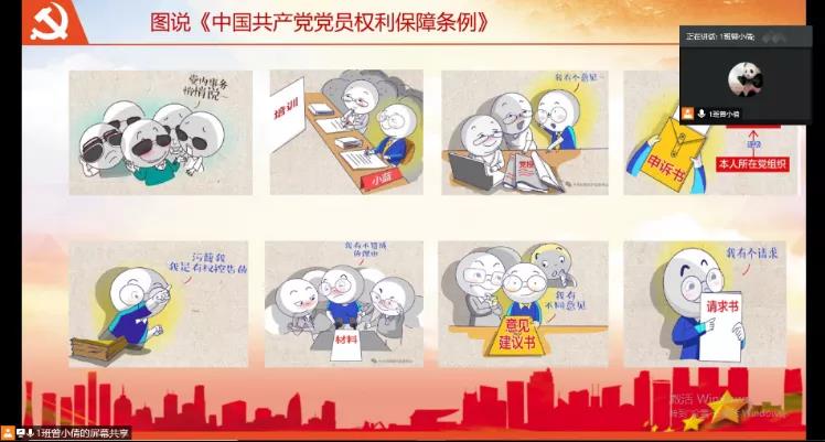 党员培养犹如培育植株,当其能够向下扎根汲取养分,又能够向上开花以回馈社会时,一名党员才完成了成长过程进入成熟阶段,党员队伍建设则需要以每一位党员合格的成长过程为依托。毫无疑问,这其中党员正当权利的保障是其扎稳根基的必然要求,而履行党员义务则是其向上开花的必经之路。为此,曾小倩带领大家学习《中国共产党党员权利保障条例》和“习近平总书记二O二一年新年贺词”,讲解了作为中国共产党员享有何种权利和权利保障途径,并在线上深入探讨了老员工党员所承担的责任。
