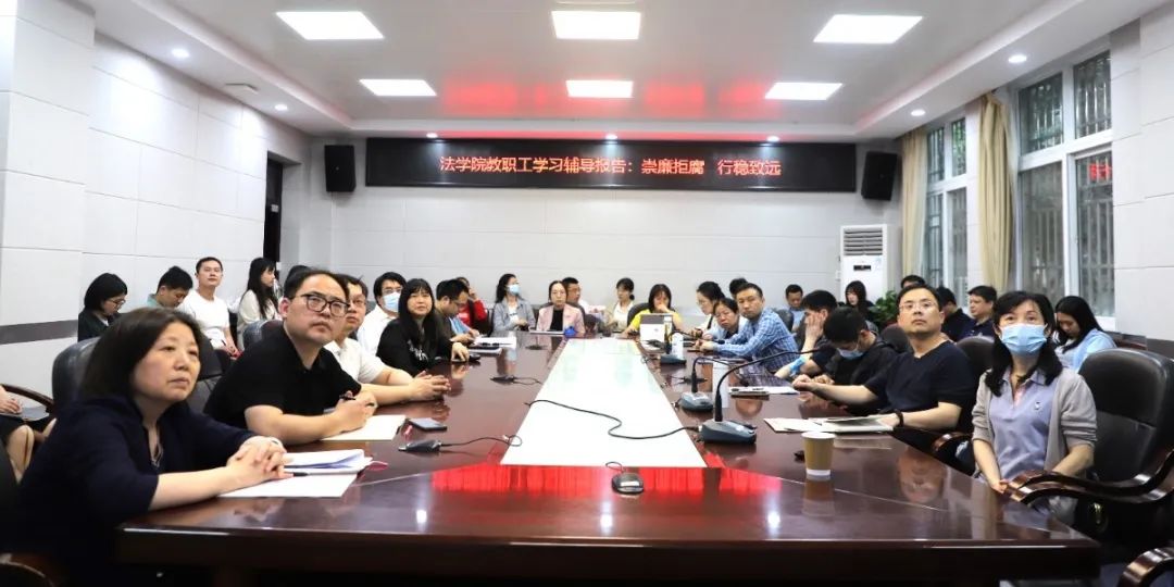 刘继文以“崇廉拒腐 行稳致远——做遵纪守法言行雅正的好教师”为题,从三方面进行了廉政宣教。一是认清新形势。要牢记习近平总书记关于全面从严治党永远在路上、党的自我革命永远在路上的重要论述和深刻判断,一刻不停歇地推进全面从严治党向基层延伸。他深入分析了新时期纪检监察工作面临新的形势、新的任务,传达了中央纪委国家监委关于深化中管高校纪检监察体制改革的有关意见精神。二是守好铁规矩。要学习和遵守好《中国共产党纪律处分条例》《中华人民共和国监察法》《中华人民共和国公职人员政务处分法》等党纪和法规。他从政治纪律、从业纪律、财经纪律、职业道德、社会公德等多个角度严肃重申了作为一名高校干部、教师应严格遵守的党纪和法规。三是以案为镜鉴。他深刻剖析了发生在教育系统如选人用人、招生考试、财务管理、科研经费等各类相关典型案例。刘继文提到,崇廉拒腐是党风廉政建设也是高校师德师风建设的重要内容,作为一名法学老师,更要一以贯之,责任以行,知法、守法,将廉洁自律规范内化于心、外化于行。