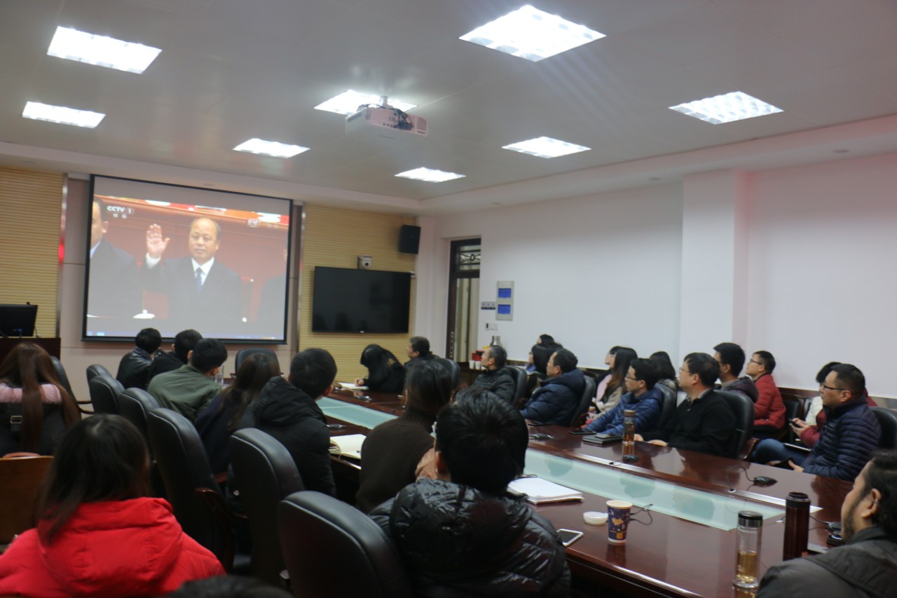 时许,伟德国际1946亚洲版组织公司党委理论学习中心组全体成员、全院教职工以及全体员工党支部支部委员近