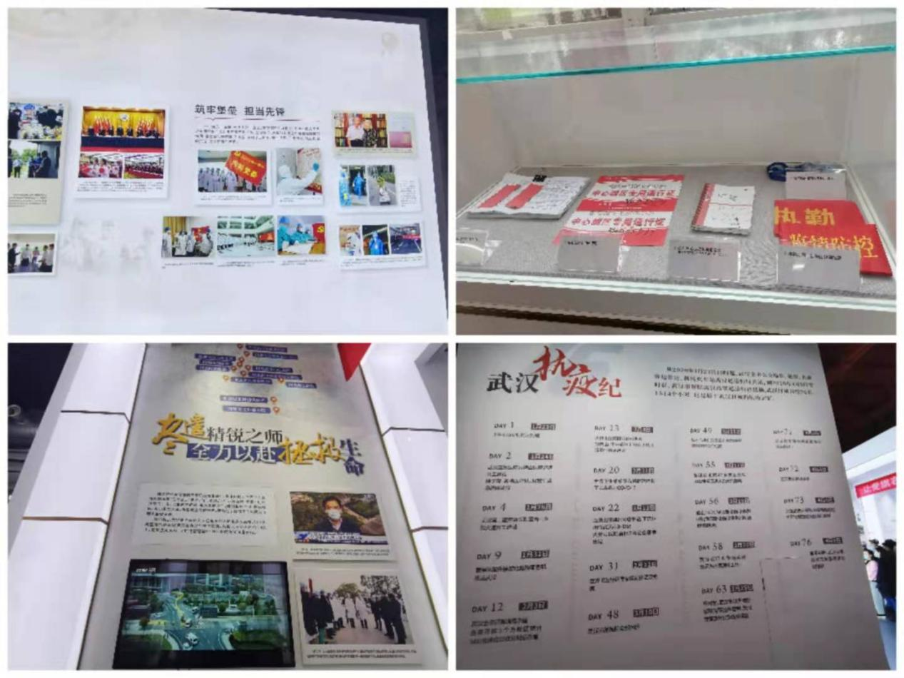 大量陈列的展品集中展示了抗疫期间公司发生的感人故事和涌现出的英雄人物,记录了华中大人无惧险难、舍身忘我谱写的战疫故事。