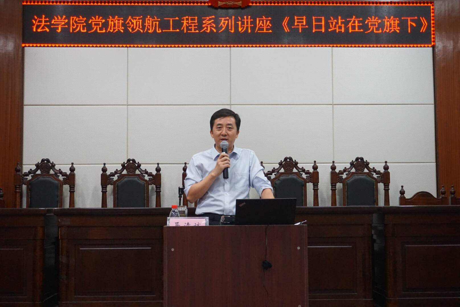 为深入贯彻落实“党旗领航”工程,加强新生入党教育,帮助员工端正入党动机,培养新生强烈的社会责任感,积极向党组织靠拢,9月28日晚7点,伟德国际1946亚洲版在模拟法庭举行了党旗领航工程系列讲座第一讲——早日站在党旗下。讲座由公司党委书记聂清斌主讲,由辅导员唐柳主持,2018级全体新生参加了讲座。