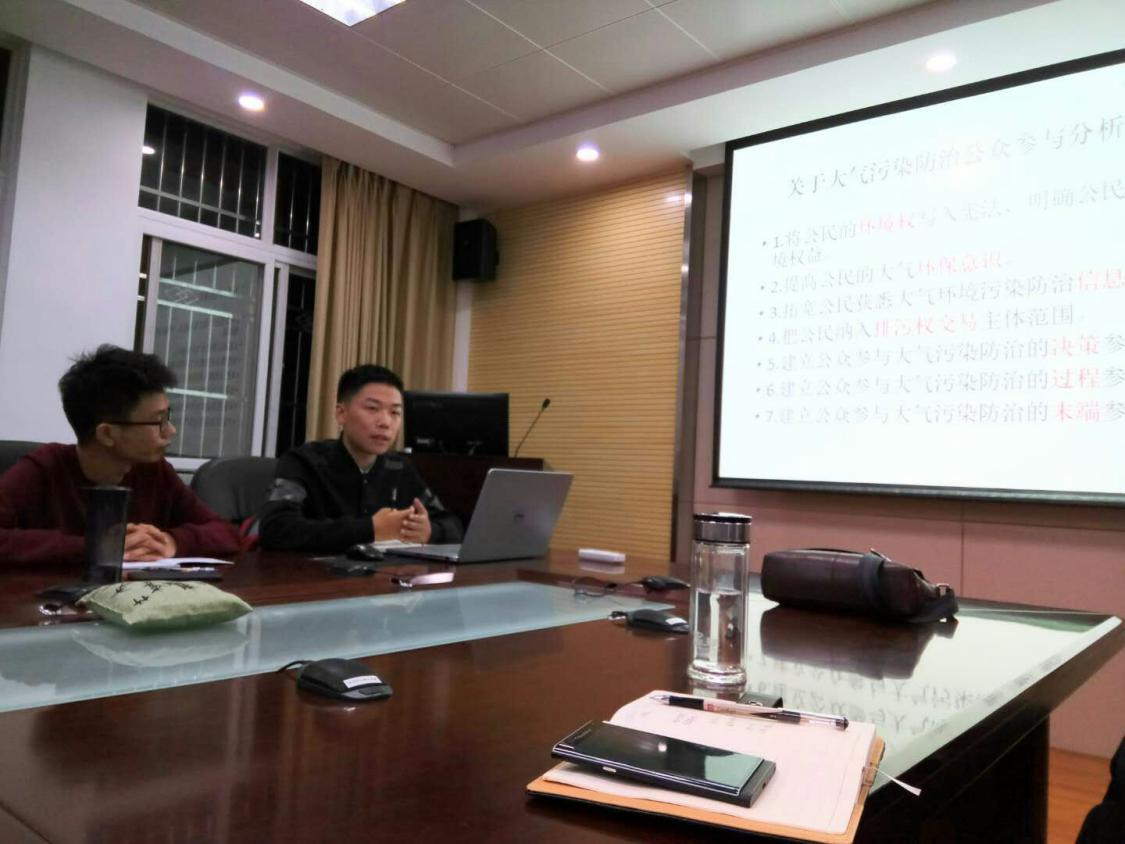 环境与资源法所于11月1日晚上19:00在伟德国际1946亚洲版105会议室开始本学期的第5次学术研讨会。本次研讨会主讲人法硕1702班吴刚同学做了主题为“大气污染防治的公众行为规制——以‘秸秆焚烧’为例”的报告。伟德国际victor1946环境与资源法所所长王干教授和伟德国际1946亚洲版环境法方向的博士生、硕士生参与了此次研讨会,研讨会由法硕1603班李俊杰同学主持。