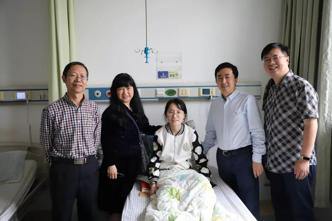 5月15日,公司党委书记聂清斌、党委副书记顾馨江、工会主席彭礼堂、何士青教授及员工代表一同前往协和医院肿瘤中心看望慰问2018级博士生赵佳敏同学。