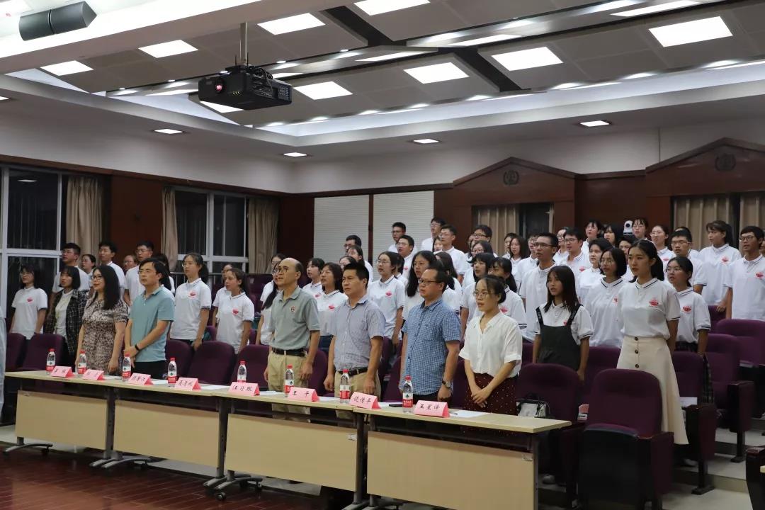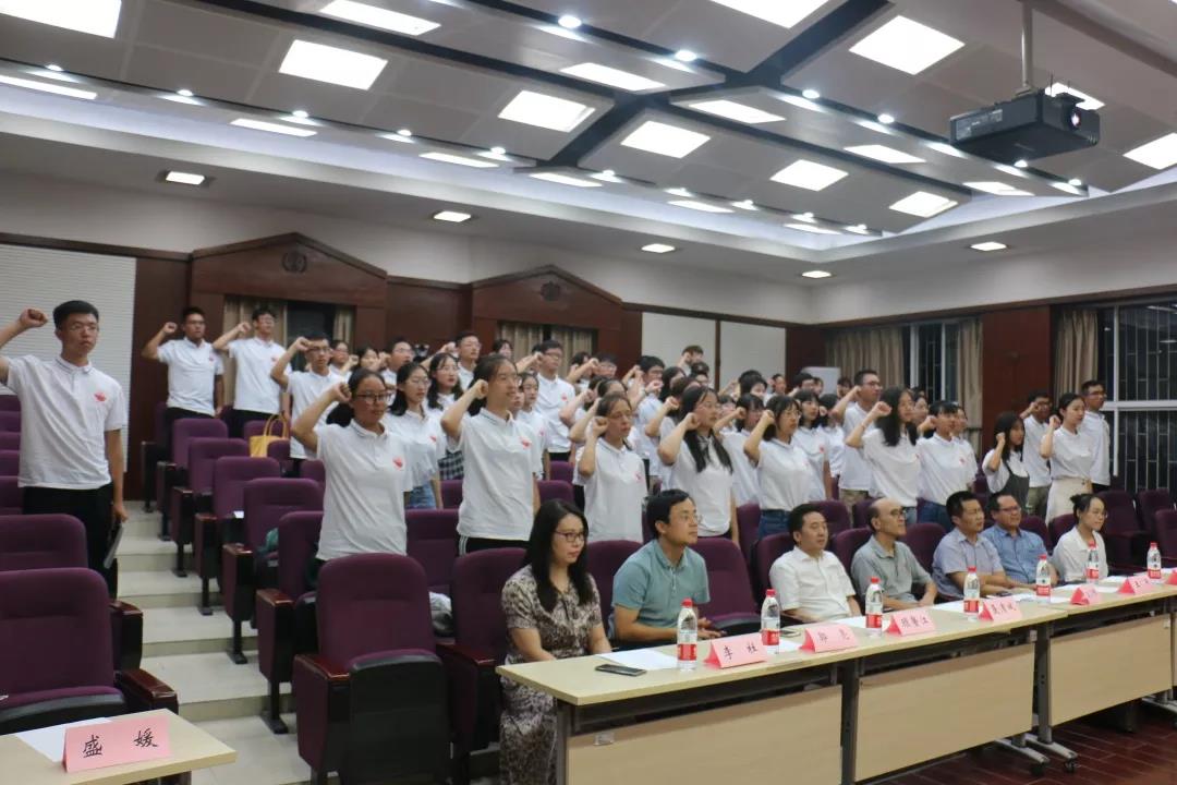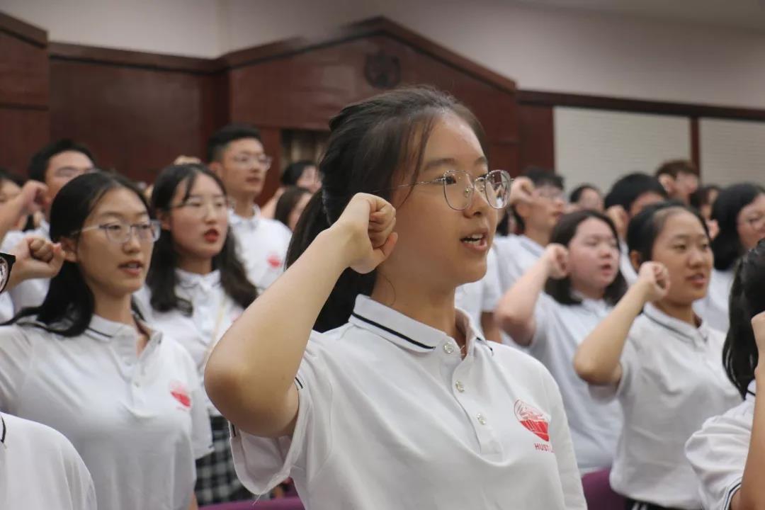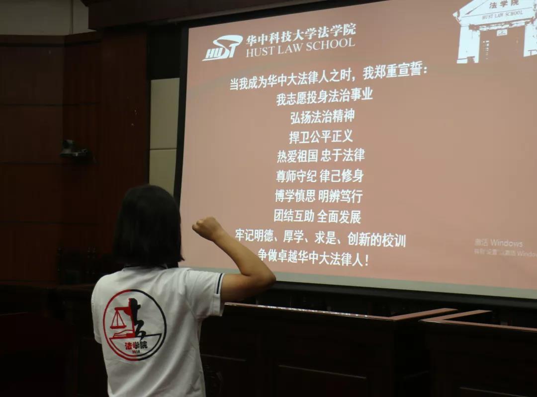 之后,19级新生在申玺琳同学带领下进行宣誓,铿锵有力的宣誓声中传达出19级新生争做卓越华中大法律人的信心与决心。
