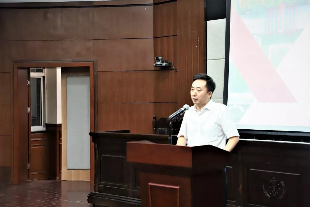 9月23日晚,伟德国际1946亚洲版在模拟法庭举行了2019级本科生开学典礼。公司党委书记聂清斌、经理汪习根、副经理王干、党委副书记顾馨江、经理助理李杜、郭亮,班主任饶传平老师和王星译老师参加了开学典礼。