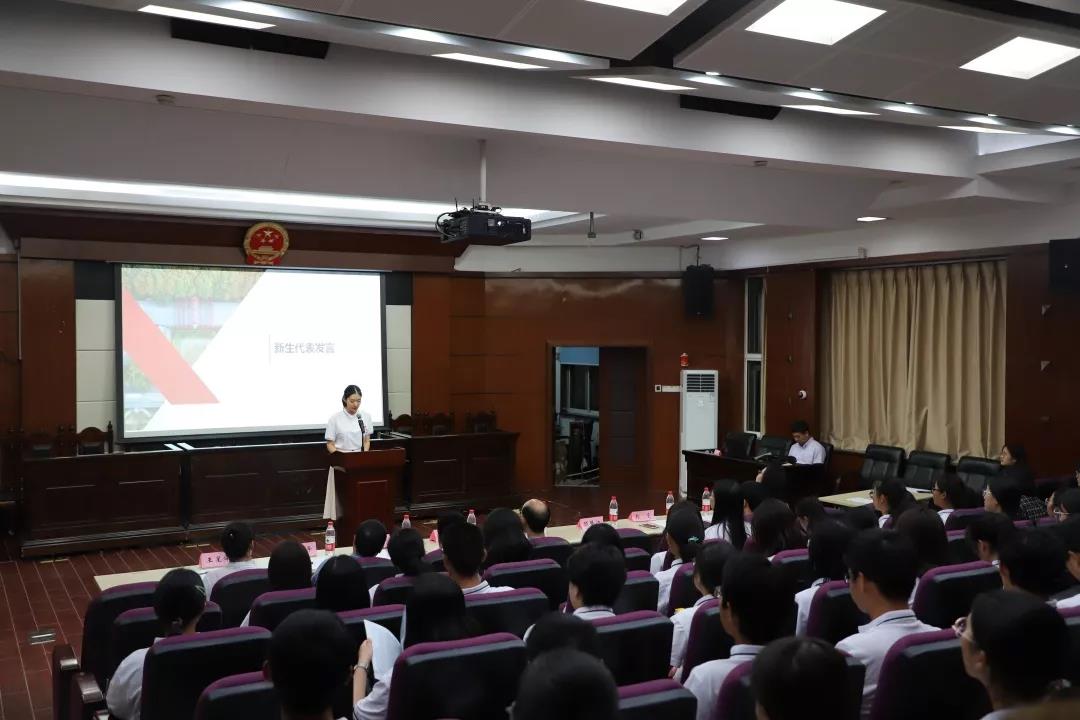 她用真诚的话语激励19级新生用双手打造未来,为法学新生们注入前进的强大动力,赢得了在座新生的热烈掌声。