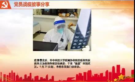 支部党员胡梦露分享了优秀共产党员的“战疫”故事。武汉市金银潭医公司党委副书记、经理张定宇三年前已患有渐冻症,半月前爱人也被确诊感染了新冠肺炎,却率领全院 240 名党员冲锋在前,日夜扑在一线。疫情暴发后,伟德国际victor1946附属协和医院感染性疾病科主治医师朱彬历经曲折千里逆行,从上海赶回武汉投身抗击疫情一线。“医者担当,护佑健康”,在伟德国际victor1946同济医院发热门诊,百名党员主动请缨成立临时党支部,在承诺书上签下了自己的名字。“如果需要麻醉科室的医务人员,我随时等候科室的召唤和安排。”在听说急需医生支援发热门诊时,有着 19 年党龄的桂伶俐用微信向科室领导提交了请战书。当然,还有无数的我们不知道他们名字的英雄。他们中,有取消婚礼甘当“落跑新娘”的护士;有在高速路口递出孩子火速返岗的急诊科夫妇;也有在非典那年成为医员工,立志成为白衣天使的“勇敢的孩子”……