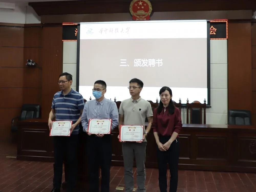 议程第三项,党委书记姜芳为指导老师徐军华、邓烈、杜治晗颁发聘书。徐军华副经理为竞赛中心颁发主任、副主任聘书。邓烈老师为部长颁发聘书。甘圆圆老师为部长助理颁发聘书。