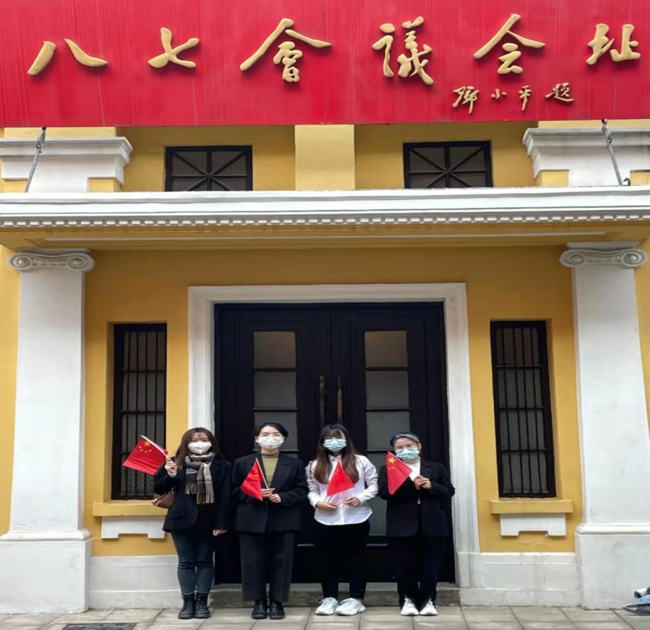团队成员们伫立在八七会议纪念馆前,映入眼帘的是大门正中央邓小平同志题写的“八七会议会址”。