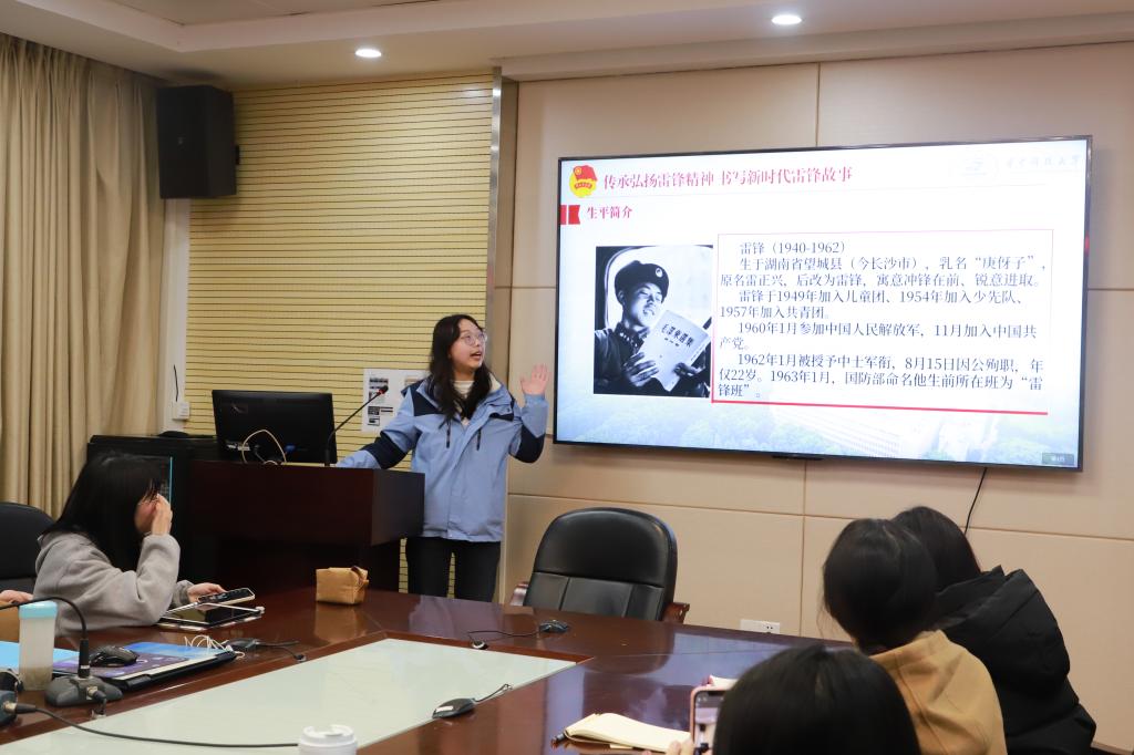 鉴赏“新时代雷锋精神”作品。学员们一一展示了“新时代雷锋精神”作品,包括视频、海报等9份作品。他们通过录制讲雷锋故事视频、学唱《学习雷锋好榜样》歌曲等丰富形式,以高质量作品为媒介,结合身边华中大人的优秀事迹,共话新时代雷锋精神内涵。