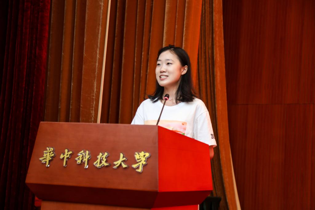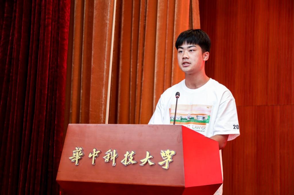 本科生新生代表徐玮潞在发言中畅叙了对未来学习生涯的无限憧憬,并号召同学们始终心怀对法律的信仰和敬畏、对人民的热爱和感激,努力拼搏,秉持明德厚学、求是创新的校训精神,德法兼修,刻苦学习,为法治中国贡献自己的力量!