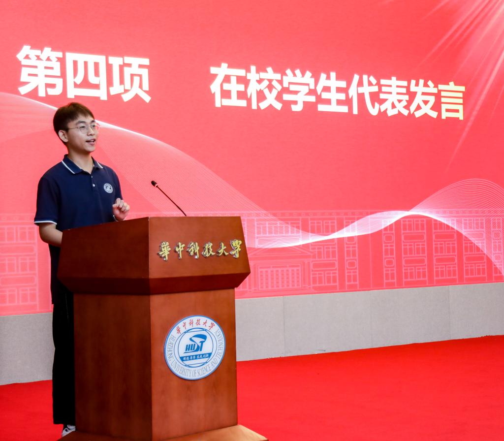 研究生新生代表田佳可在发言中与新同学共勉:一是把握时代主题,坚定理想信念,做志存高远的奋进者;二是聚焦专业学习、练就过硬本领,做勇攀高峰的开拓者;三是涵养家国情怀、发挥先锋力量,做德法兼修的奉献者。