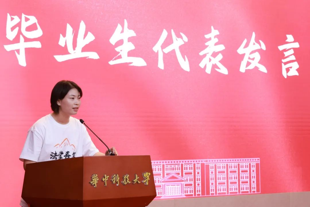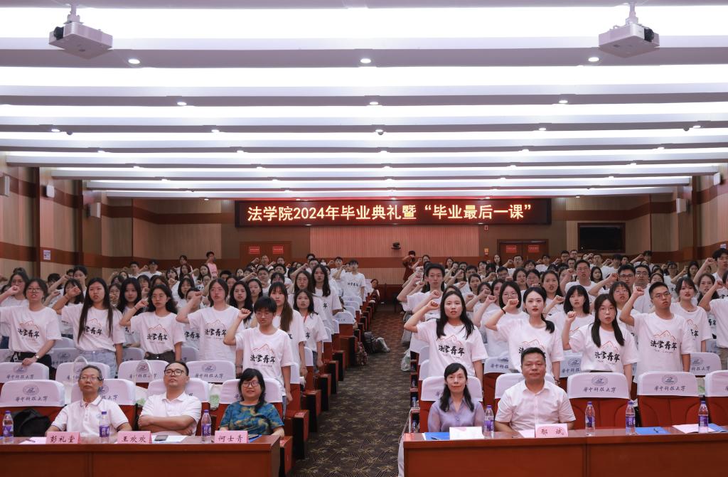 在宣誓环节,全体毕业生庄严宣誓,不忘谆谆教诲,德法兼修,胸怀国之大者,坚定理想信念,做卓越华中大法律人,让青春在党和人民最需要的地方绽放绚丽之花。