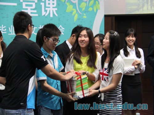 两轮精彩的答辩结束之后,王盘同学作为伟德国际1946亚洲版2014届本科毕业生代表发言,他回顾了大学四年同学们一起度过的美好时光,以及成长感受。优秀学位论文答辩选手也向学弟学妹们赠送了自己所喜爱的书作为礼物,并祝福学弟学妹能够在大学里活出真正的自己。