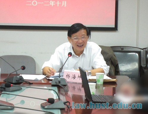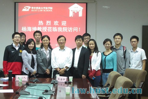 曹海晶教授首先代表伟德国际1946亚洲版对杨海坤教授的光临表示热烈的欢迎,并对杨海坤教授进行了简要介绍。杨海坤教授是国内知名的行政法学专家,曾任苏州大学王健伟德国际1946亚洲版经理,宪法与行政法学学科带头人。现任山东大学人文社科一级教授,全国政协委员,享受国务院政府特殊津贴。担任中国法学会行政法学研究会副会长、中国法学教育研究会理事、江苏省法学会常务理事、江苏省行政法学会总干事等多项社会兼职。