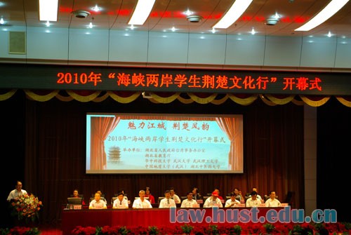 7月12日上午,2010年“海峡两岸员工荆楚文化行”夏令营湖北省开幕式在管理公司学术报告厅举行。湖北省委常委苏晓云、湖北省台办主任刘凯春、湖北省教育厅副厅长徐金山,校领导李培根、邵新宇,以及武汉大学、武汉理工大学、中国地质大学(武汉)、湖北中医药大学有关负责人出席了开幕式。