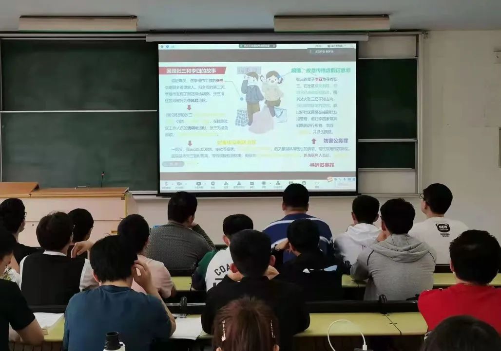疫情防控相关的法律有哪些?涉及到哪些罪名?隐瞒中风险地区旅居史、拒绝配合防疫措施造成严重后果会承担什么样的法律责任?为了能将一堂普法课讲好,普法志愿者在老师的指导下,在仔细研习的基础上,细致分析受众特点,反复打磨课件。宣讲同学从身边事讲起,由事入情,由情入理,以情及法,将原本晦涩的法条用一个个鲜活的事例、用大家喜欢听、听得懂的语言娓娓道来。“看到同学们愿意听、喜欢听很有成就感!受到锻炼的同时也深感老师们平时备课的辛苦。”本科生陈梦洁这样介绍她授课的体会。