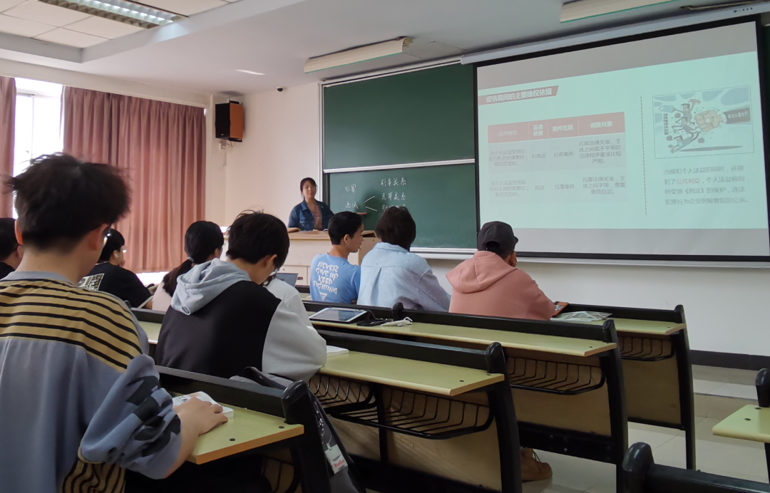 普法志愿者从同学们的生活经历讲起,从疫情防控的角度介绍了法律作为“社会免疫系统”的重要性,以“张三”和“李四”为例,讲述了违反疫情防控相关法律的后果,强调了疫情防控相关措施的重要性,同时也增强了同学们的法治思维。加以“一人害一城”的案例,以“蝴蝶效应”生动形象的讲解了疫情防控期间个人不当行为可能带来的危害后果,让同学们更加深刻的理解了“疫情防控,法治同行”。