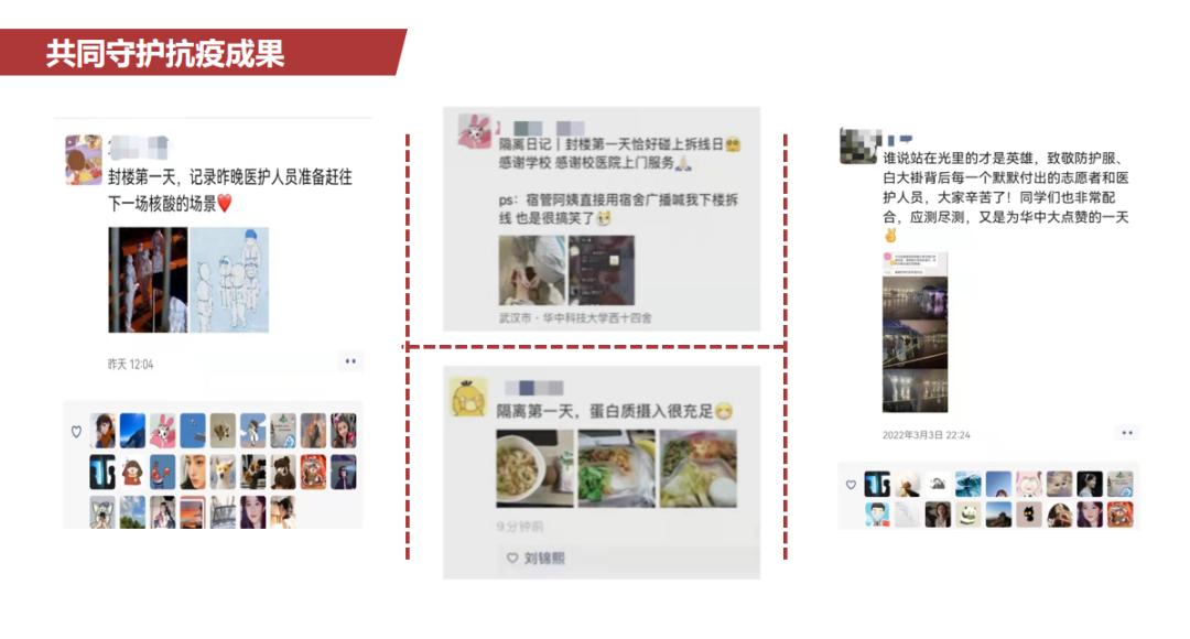 “武汉是英雄的城市,武汉人民是英雄的人民,在武汉抗疫的艰难时期,华中大作为抗疫主力军,舍生忘死守护人民生命安全和身体健康,为打赢武汉战役、湖北战役、全国战役做出艰苦卓绝的努力与重要贡献。作为一名华中大学子,深刻认识疫情防控严峻复杂性,牢牢守住公司疫情防线,义不容辞!”当讲到疫情防控重要性时,伟德国际1946亚洲版团委副书记、2020级硕士研究生崔静同学这样动情说到。回忆学期初的精准防控,伟德国际1946亚洲版2021级硕士孙娟这样讲到“疫情画下了物理上的隔断,却阻隔不了温暖的传递。面对突如其来的疫情,我们看到的是全校师生团结一致的齐心,感受到的是众志成城的抗疫决心,坚定不移的是战胜疫情的信心!”