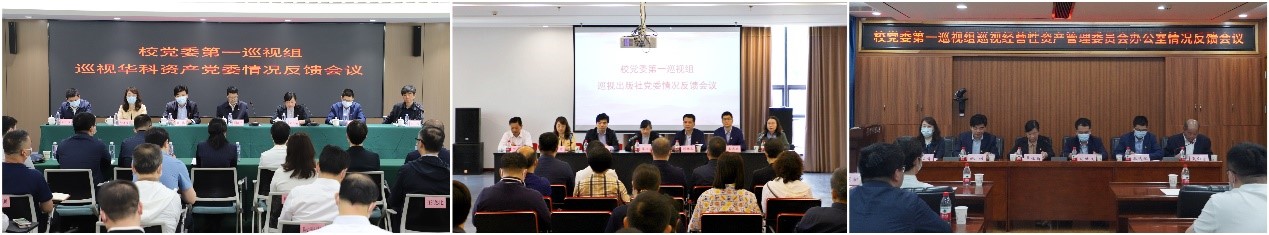 图为公司党委第一巡视组巡视武汉华中科大资产管理有限公司党委、伟德国际victor1946出版社党委、经营性资产管理委员会办公室情况反馈会。