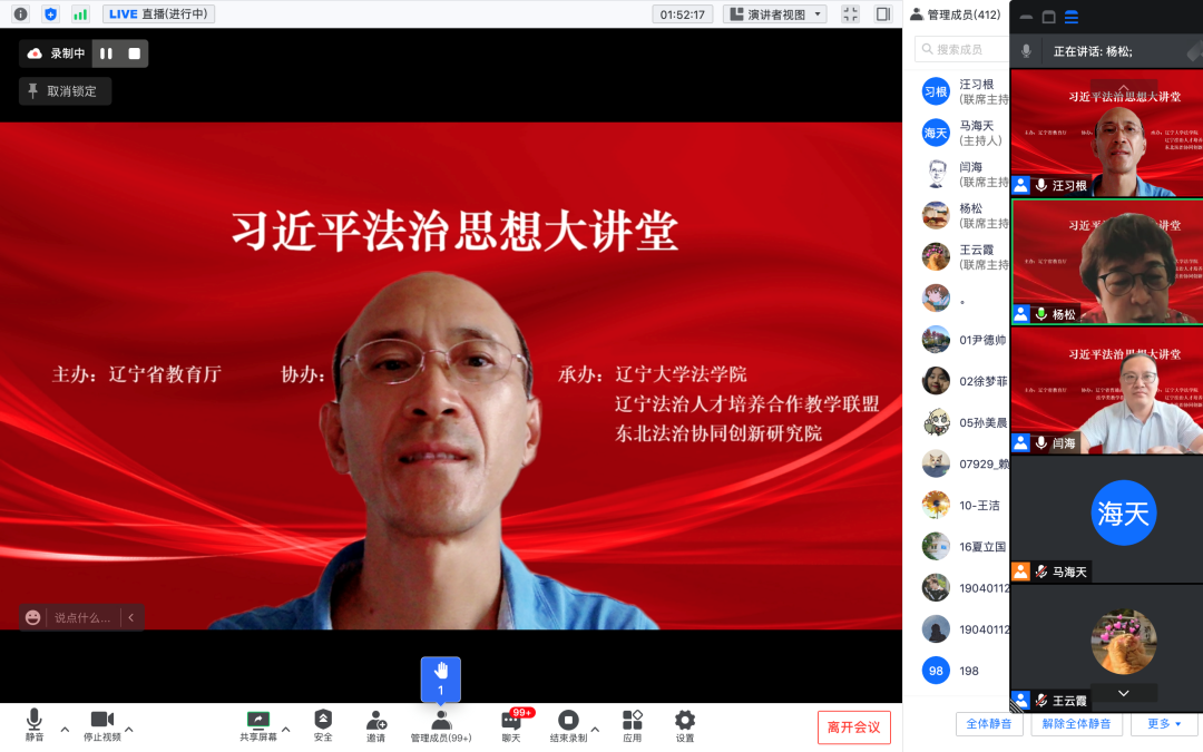 8月3日下午,伟德国际1946亚洲版经理、习近平法治思想研究中心主任汪习根教授受邀在辽宁省高校“习近平法治思想大讲堂”作了题为“习近平法治思想及其司法实践”的专题讲座。讲座由辽宁大学副董事长杨松教授主持,辽宁省十九所伟德国际1946亚洲版系五百余名师生通过线上参与讲座。