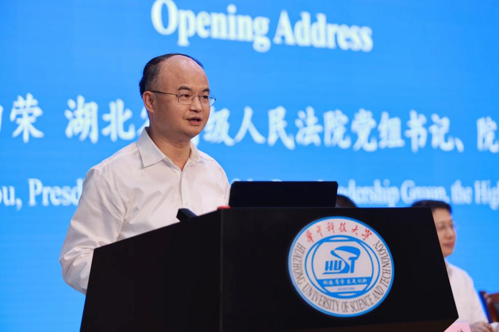 游劝荣提到,近年来湖北省高级人民法院深入贯彻落实习近平法治思想,推动人工智能技术在司法领域应用,加强智慧法院建设,在法院信息化建设方面取得了丰硕成果。他谈到,省法院与华科大开展战略合作以来,双方充分发挥各自领域优势、平台优势、技术优势,进行了多形式合作交流,携手在信息化项目建设、技术人才培养、学术理论研究等多领域开辟合作空间,取得了实质性进展和明显成效,为智慧法院建设提供了重要的理论支撑、技术支撑和智力支撑。他指出,湖北法院将继续加强与高校等机构的深度合作巩固提升智慧法院建设成果,全面推进审判体系和审判能力现代化。希望通过此次研讨会,能够同各位专家学者进行通力合作交流,取得优秀成果,共同为推进人工智能、大数据运用与司法工作深度融合,法治国家建设贡献力量。