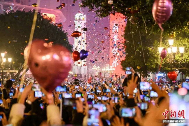 2024年1月1日,民众在重庆解放碑步行街跨年迎新