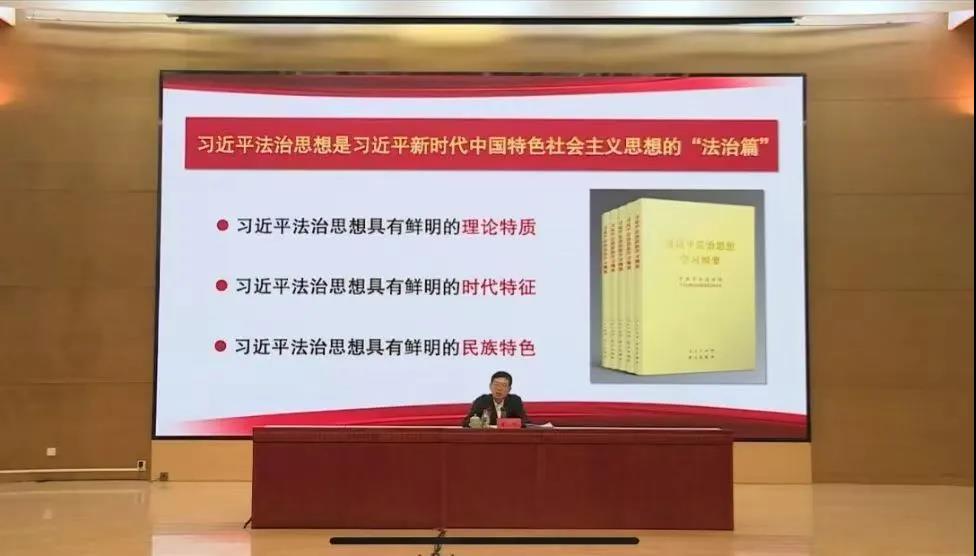 司法部党组成员、政治部主任黄祎以“学深悟透笃行习近平法治思想坚定不移走中国特色社会主义法治道路”为主题开启了第一讲,聚焦习近平法治思想中的“十一个坚持”这一核心内容,深入讲解了习近平法治思想及中国特色社会主义法治道路的深刻内涵及重大意义。