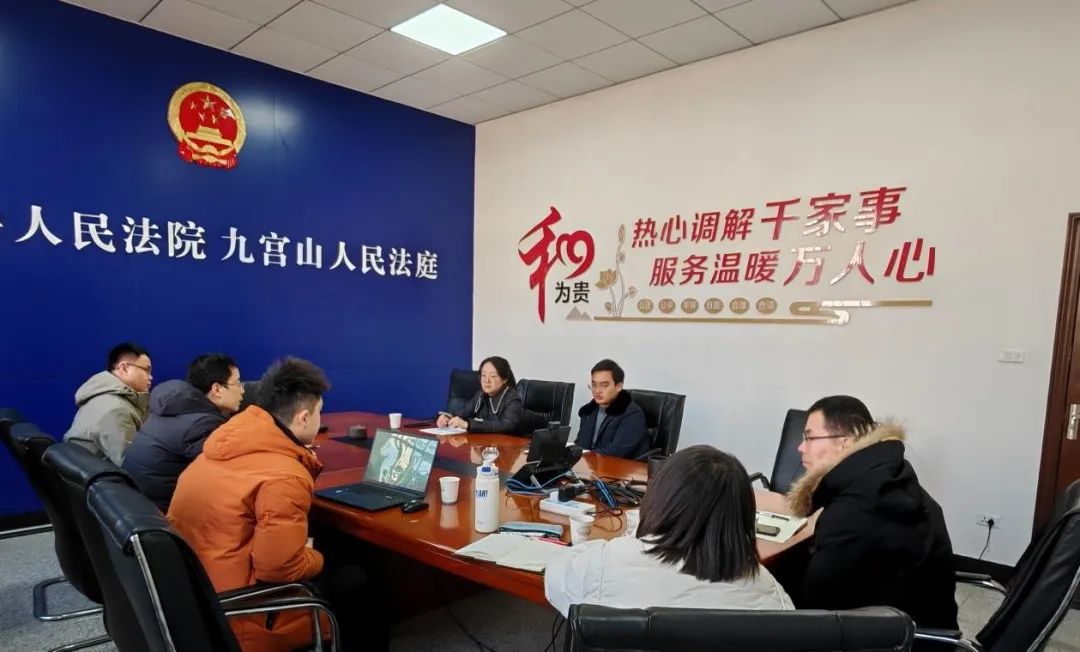 调研组实地考察了通山县人民法院及其派出基层人民法庭——九宫山人民法庭。县人民法公司党组书记、经理邱剑军,党组成员、副经理刘晓丽,党组成员雷自成,立案庭庭长毛岩,审管办副主任程彬,九宫山人民法庭庭长徐华南,洪港人民法庭庭长张汪洋等法院领导和相关部门负责人对法院及法庭的日常运作情况、审判执行工作实践中遇到的难点问题以及参与基层治理所取得的成效进行了详细介绍。