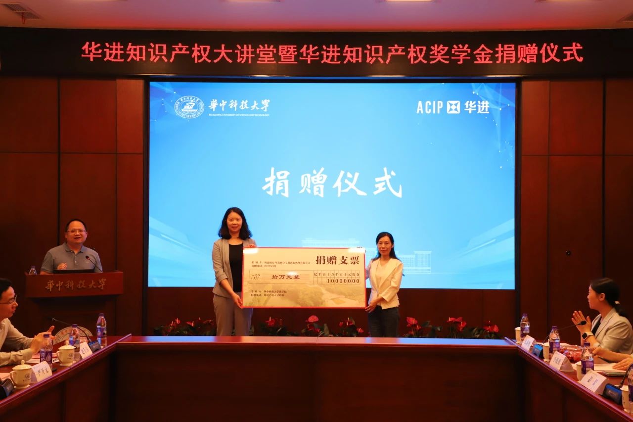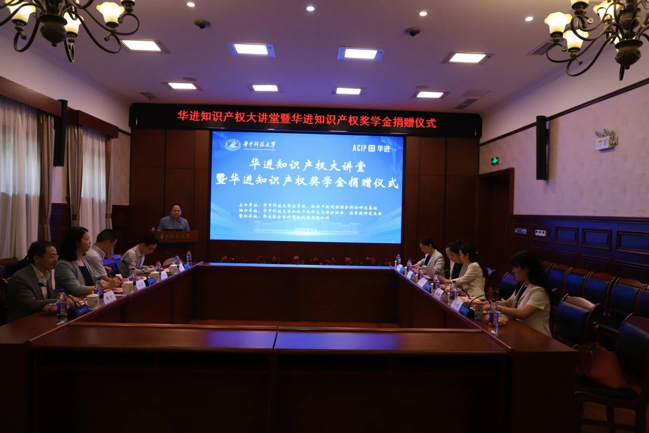 5月24日,为深入推进校企协同育人成果转化,在员工企业华进联合专利商标代理有限公司的支持下,华进知识产权大讲堂暨华进知识产权奖学金捐赠仪式在梧桐语问学中心明义楼问道厅举行。湖北省高级人民法院知识产权庭庭长严开元法官,武汉市中级人民法院知识产权庭副庭长赵千喜法官,华进武汉分公司负责人袁荟主任,华进律师事务所主任黎叶律师出席活动。公司党委书记姜芳女士、副经理熊琦教授、李薇薇副教授、伍春艳副教授、马晓助理教授和知识产权学子们公共参加活动。