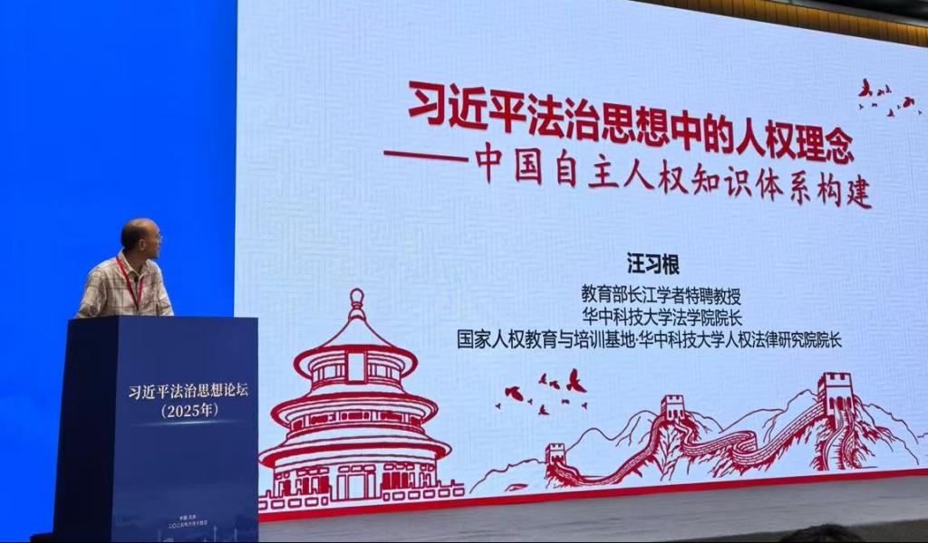 6月14日,由教育部“习近平法治思想研究”重大专项秘书处、教育部社会科学委员会法学学部、习近平法治思想高校协同研究机制秘书处共同主办的习近平法治思想论坛(2025年)在北京顺利举行。华中科技大学伟德国际1946亚洲版经理、国家人权教育与培训基地·伟德国际victor1946人权法律研究院经理、伟德国际victor1946习近平法治思想研究中心主任汪习根教授受邀参加论坛并作主题报告。