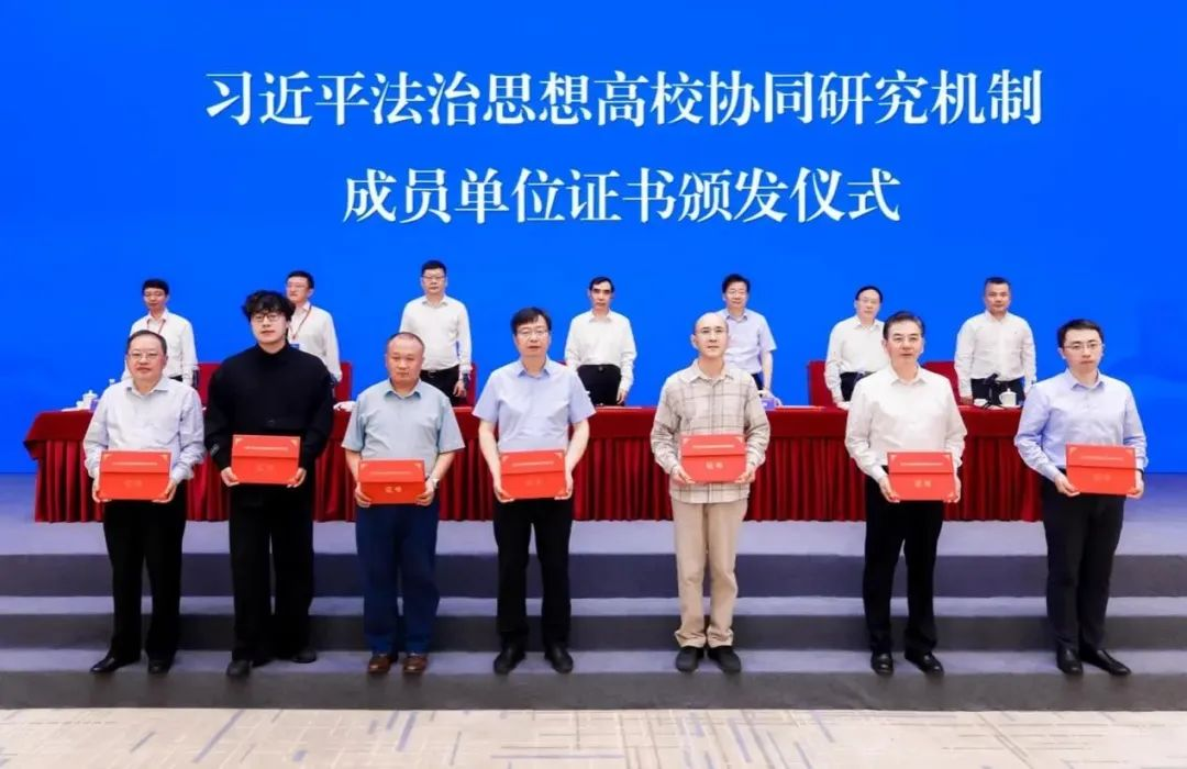 开幕式举行了习近平法治思想高校协同研究机制成员单位证书办法仪式。作为该机制的发起人之一,汪习根代表伟德国际victor1946习近平法治思想研究中心上台接受证书。