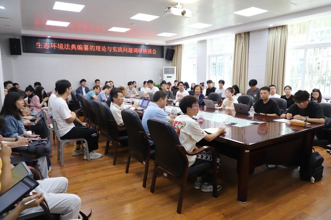 裴丽萍教授、王干教授、鄢斌副教授、胡帮达副教授等师生围绕调研主题,就法典中环境权的界定、不同种类污染之责任原则的确立、生态环境法典与现有三十余部环境单行法的关系、以及在立法、适用中与民法典的协调和对接等具体问题与吕忠梅教授展开了讨论,并提出了自己的建议。
