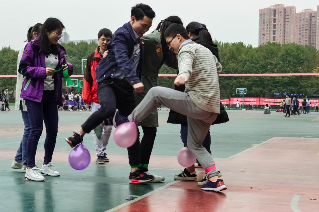 来自六个公司近150名员工在这里集聚,开始了一场美丽邂逅的盛会。首先开始的游戏是“两人三足踩气球”,作为开场环节,这个小游戏目的是让同学们在最短的时间内与陌生同学简单认识、互相了解,增进相互间的默契。