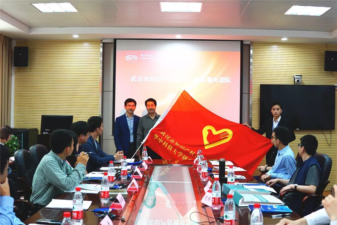 继而,蔡祖国宣读了《关于成立武汉市知识产权青年志愿者服务团队的决定》,并由王干向队长张庆祥授旗,饶传平向志愿者代表颁发工作牌。